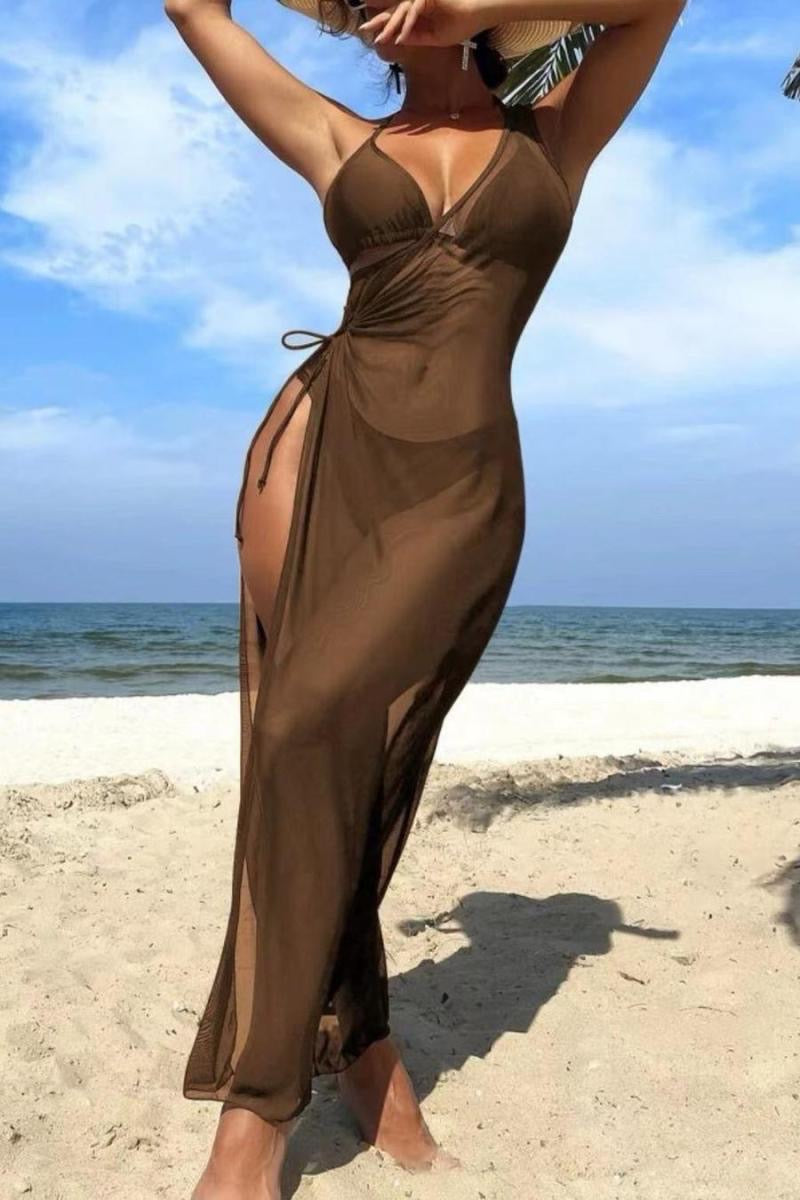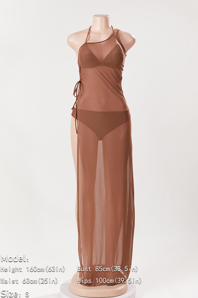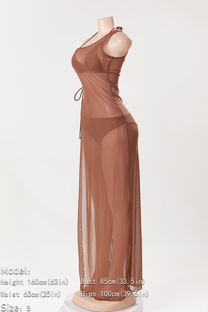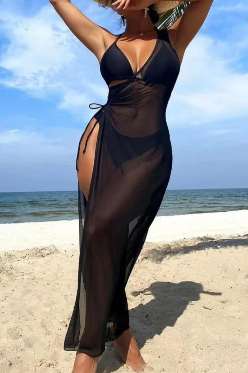 3 COLORS- SEE THROUGH MESH DRESS COVER UP WITH BIKINI SET