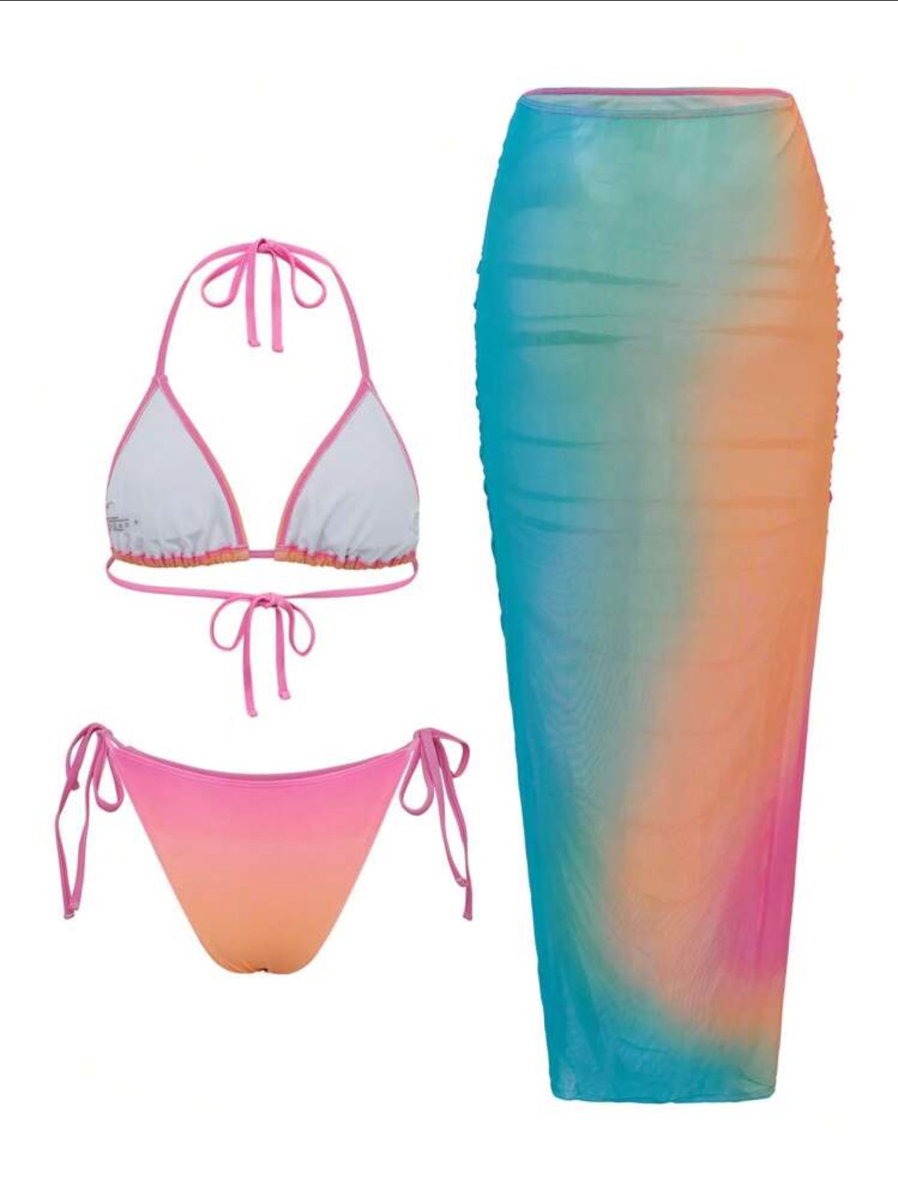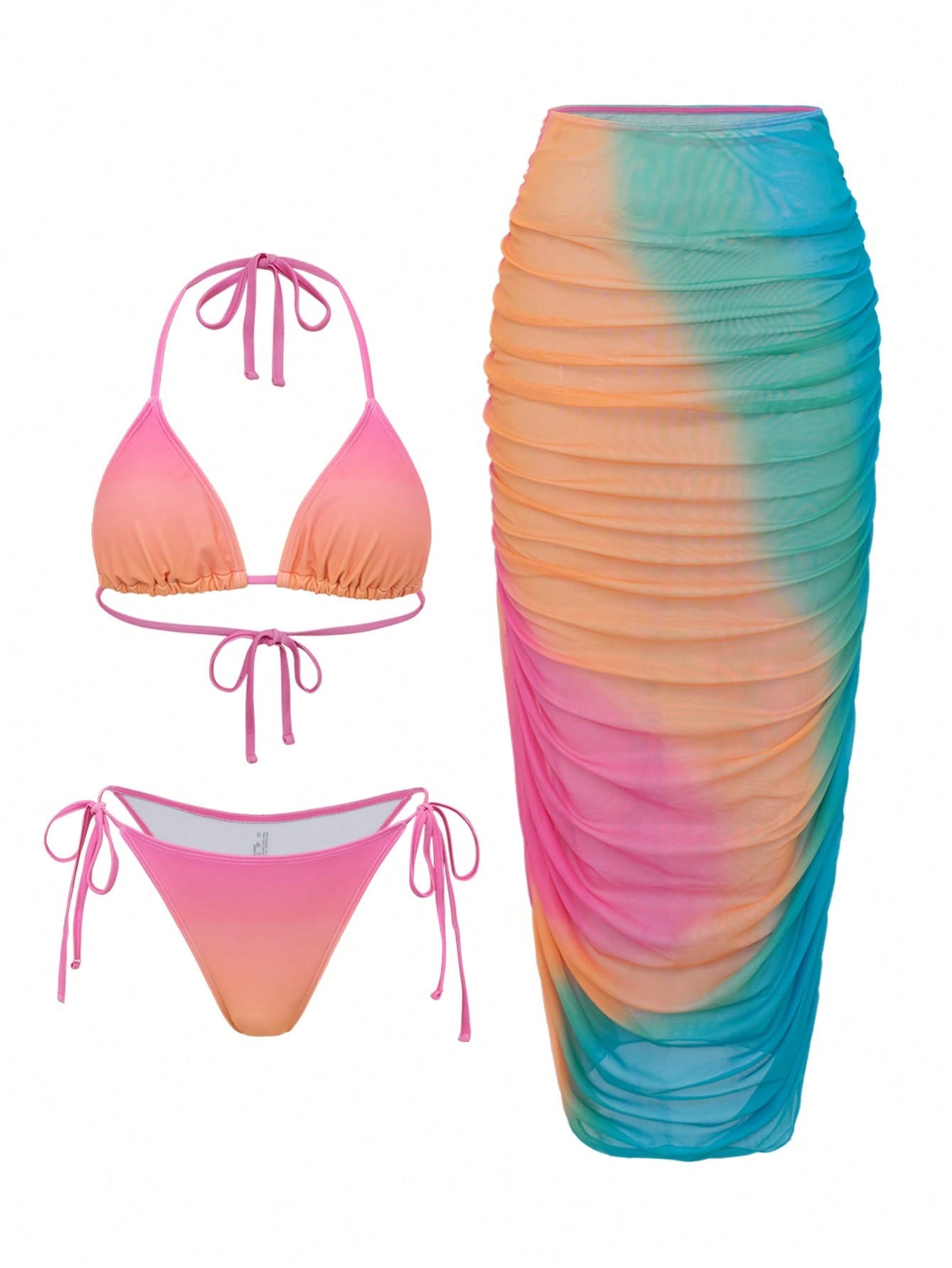 Swim Summer Beach Halter Triangle Bikini Set With Cover Up
