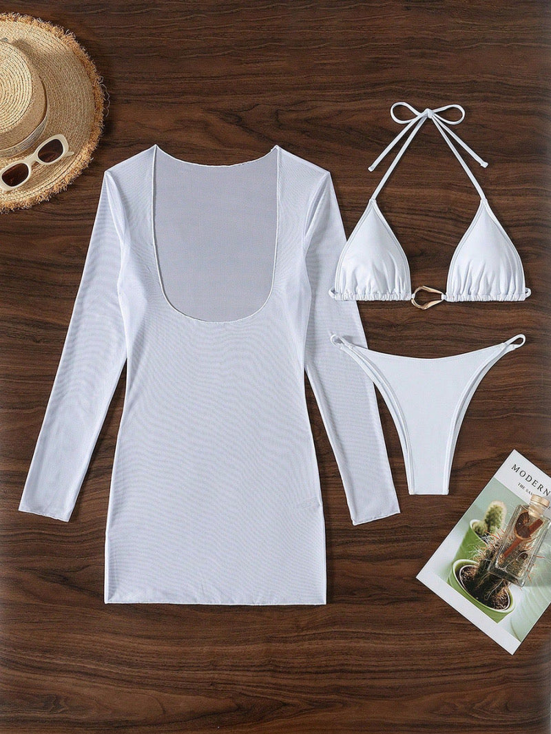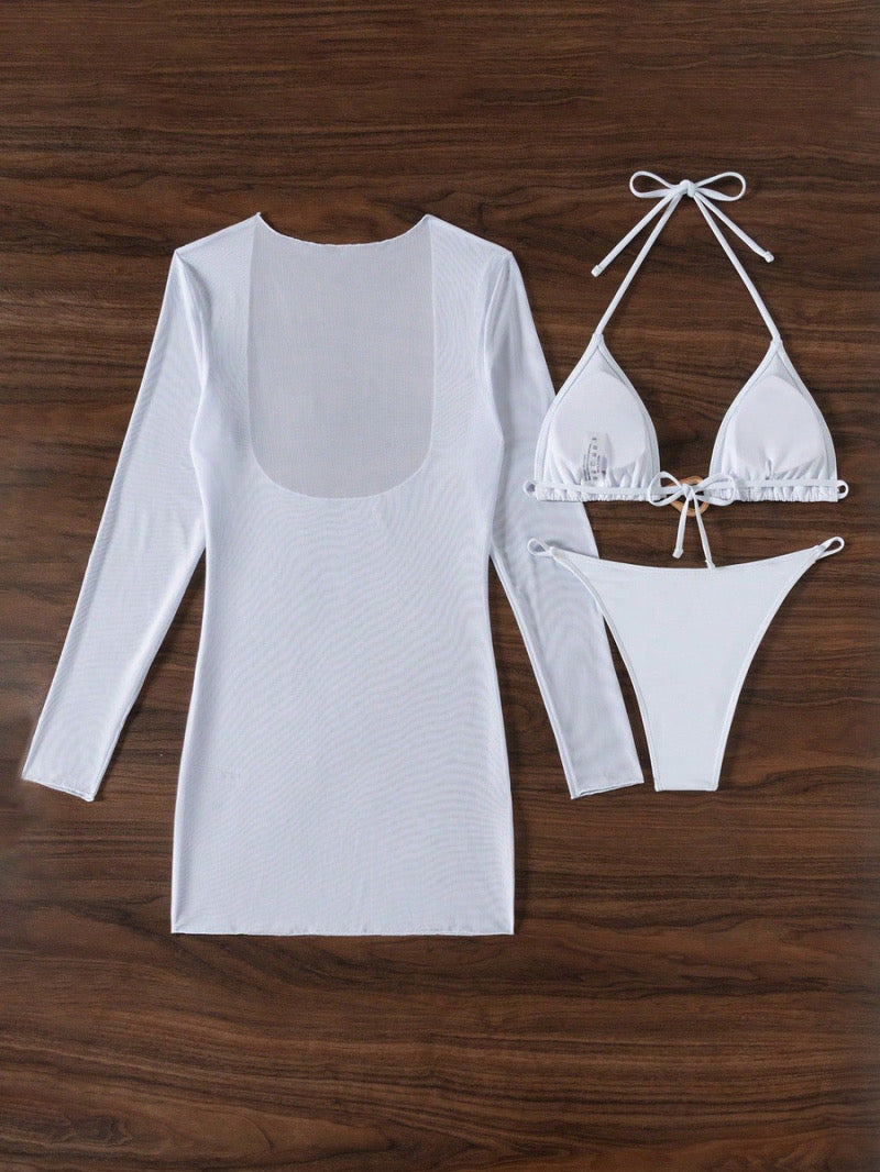 Swim Summer Beach Knot Back Bikini Set With Ombre Beach Cover Up Music Festival