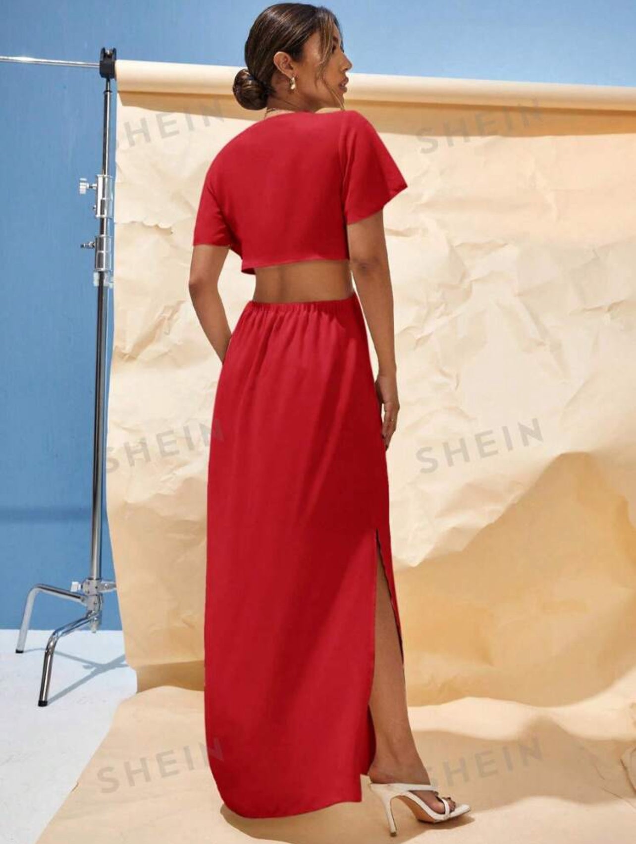 SXY Women's Vacation Solid Color Deep V Hollow Waist Maxi Casual Dress