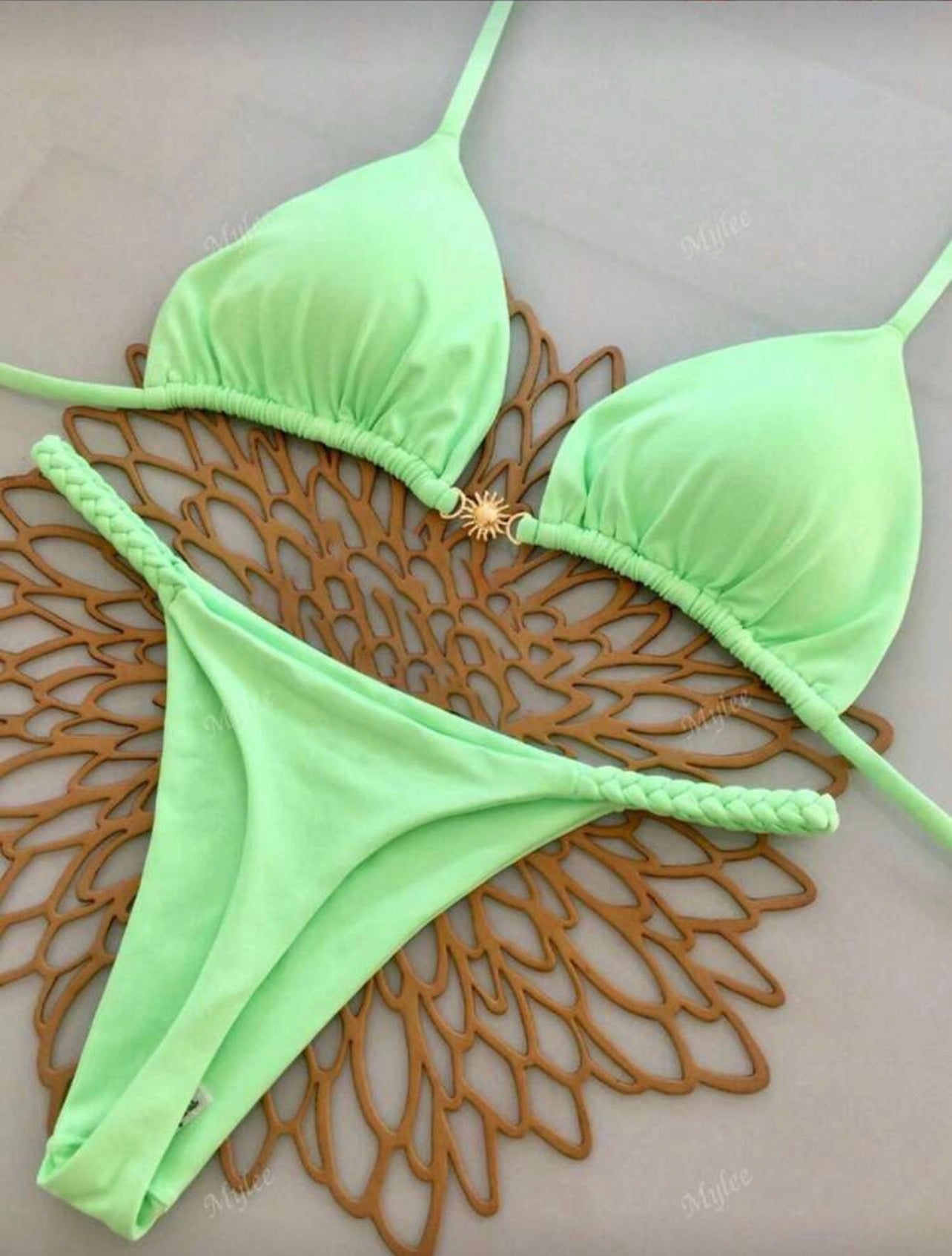 New Women's Two Pieces Bikini Set, Sexy Simplistic Solid Color With Tie, Swimwear