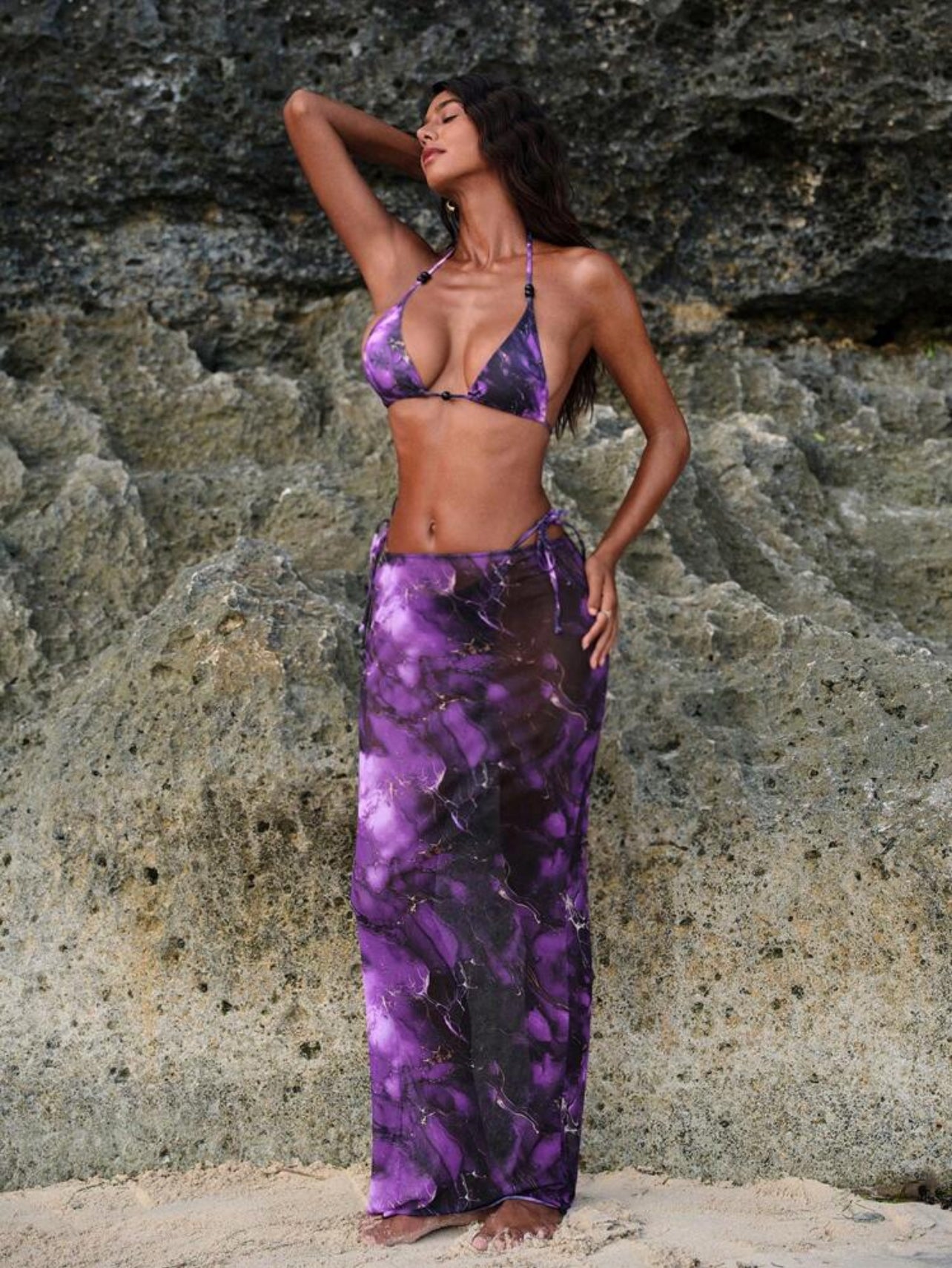 Opulessa 2pcs Women's Tie Dye Print Halter Bikini Set Set With Matching Skirt,Country Concert Outfit,Thong Bikini Set,Beach Outfits For Woman,Vacation Outfits Woman,Sarong,Beach Dress,Bikini Set