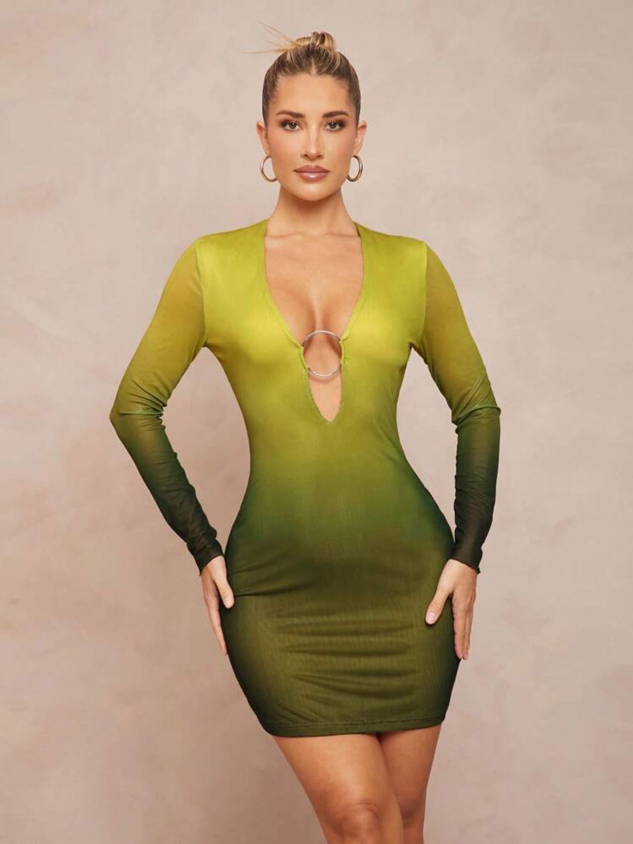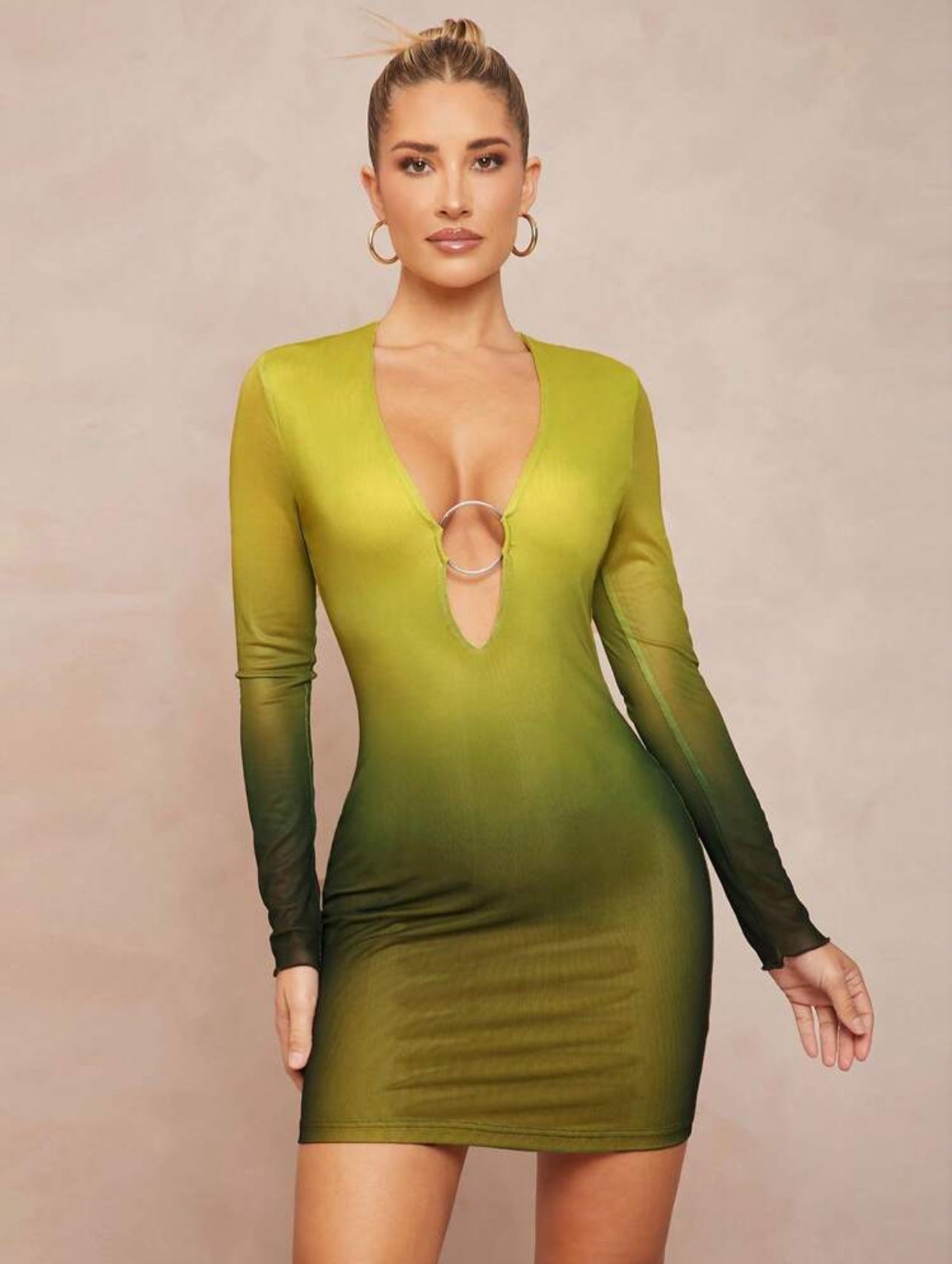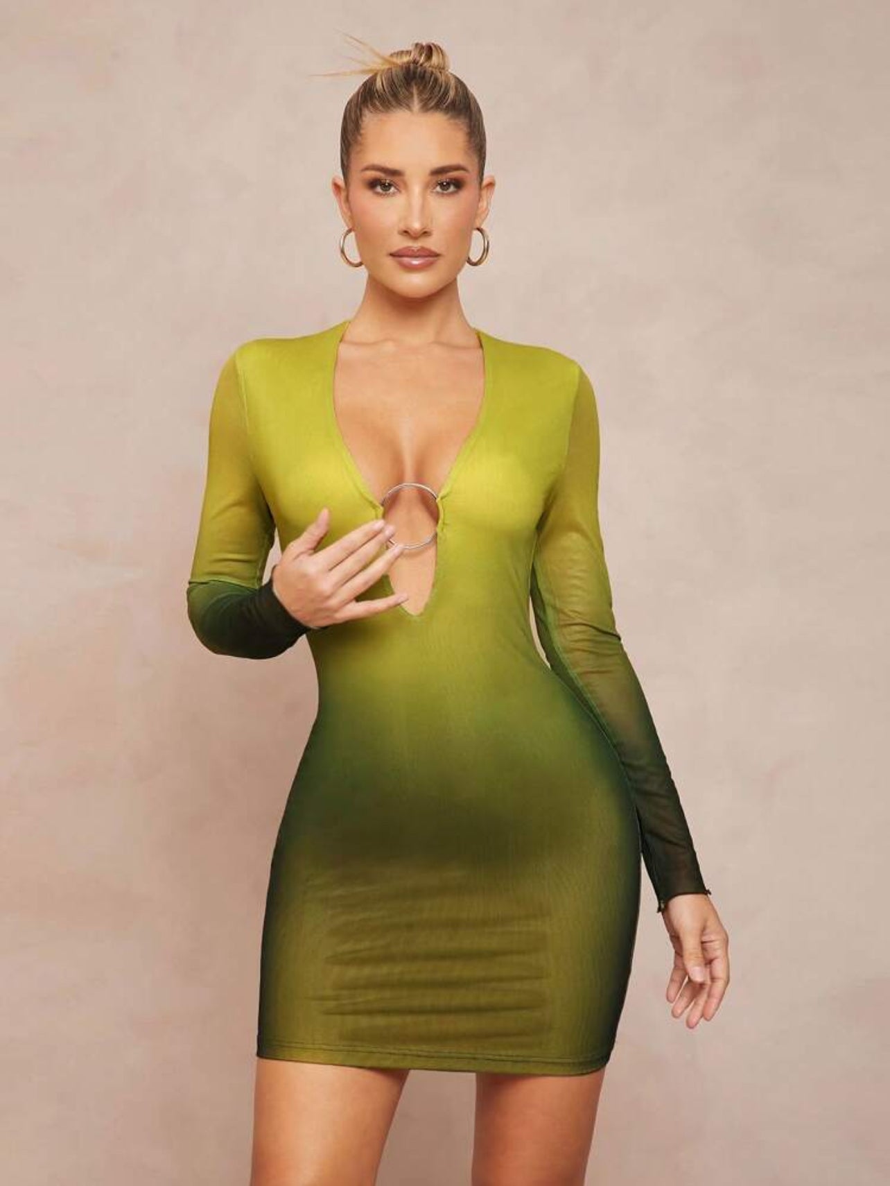 Spring Summer Swimsuit Swimwear Swim Vacation Easter Bohemian BOHO Sea Beach Hot Outdoor Richly Layered Wedding Season Banquet Coming Of Age Ceremony Beach Seaside Holiday Deep V-Neck Metal Decor Ombre Long Sleeve Women Mini Dress,Tea Party Dress,