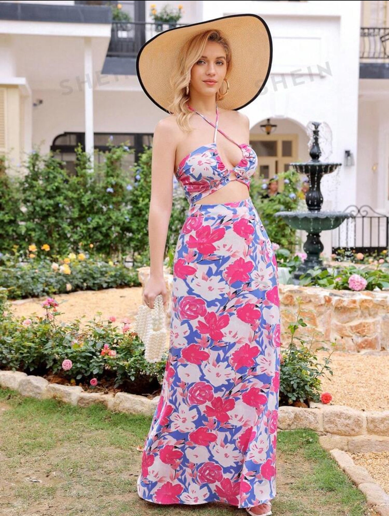 VCAY Women Floral Print Sleeveless Halter Neck Vacation Dress For Summer
