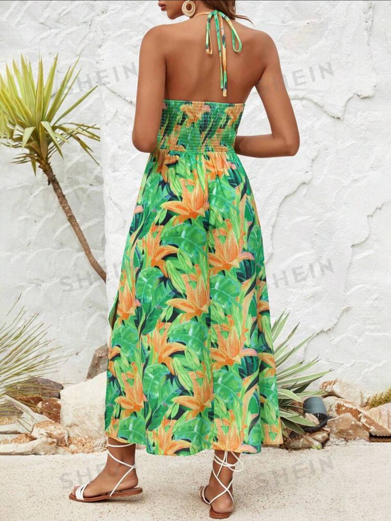 VCAY Women Hollow Out Bandage Fashionable Split Holiday Style Cami Dress