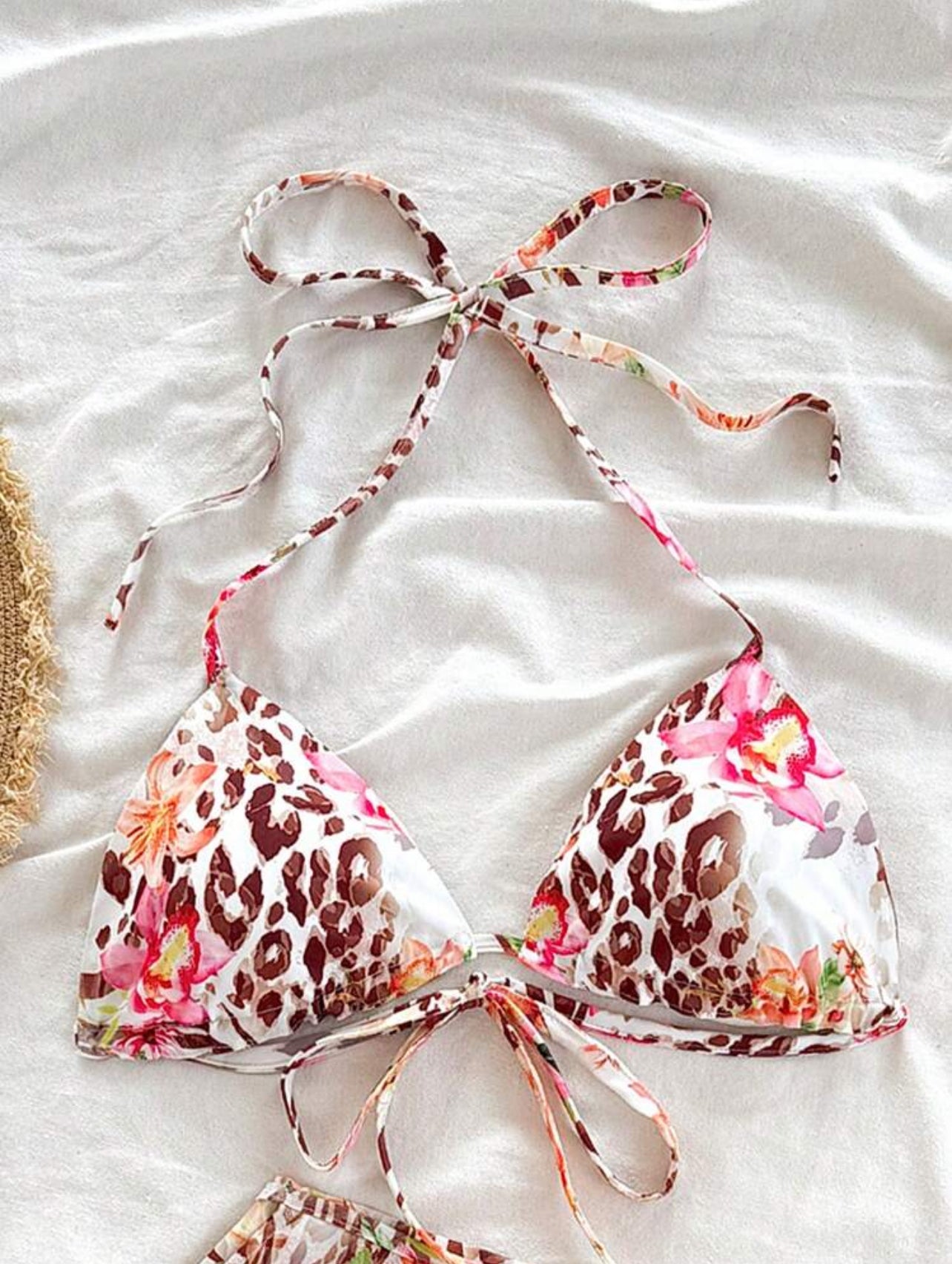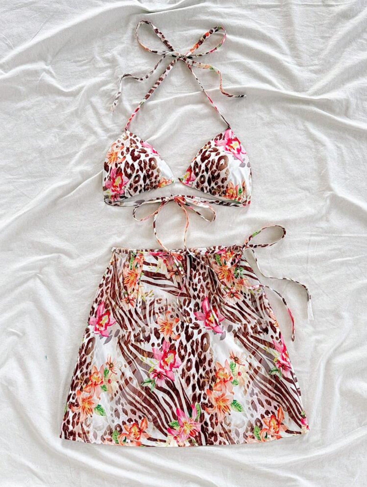 WYWH Women's Vacation Music Festival Colorful Leopard Patchwork Floral Print Tropical Flower Pattern Graduation Back To School Beach Party Lunch Cute Casual Summer Women's 2 Pieces Set Floral Print Holiday Beach Outfit Bra + Tie-Up One-Piece Skirt